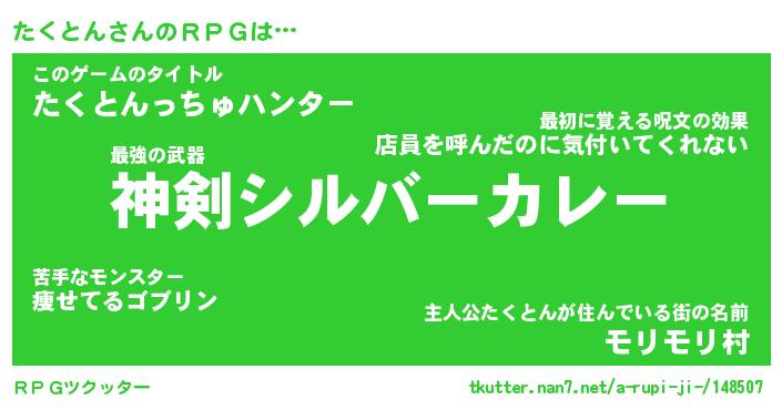 | 男性向けラノベタイトル風あだ名 | 『たくとんの憂鬱』 |