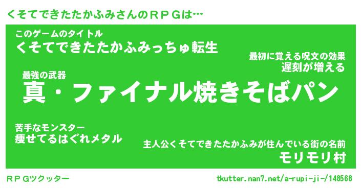| 胡散臭い通販商品みたいなあだ名 | 『億万長者になれるブレスレット…その名も「くそてできたたかふみ」』 |