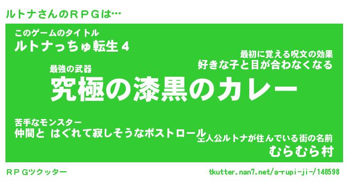 | 男性向けラノベタイトル風あだ名 | 『ルトナの憂鬱』 |