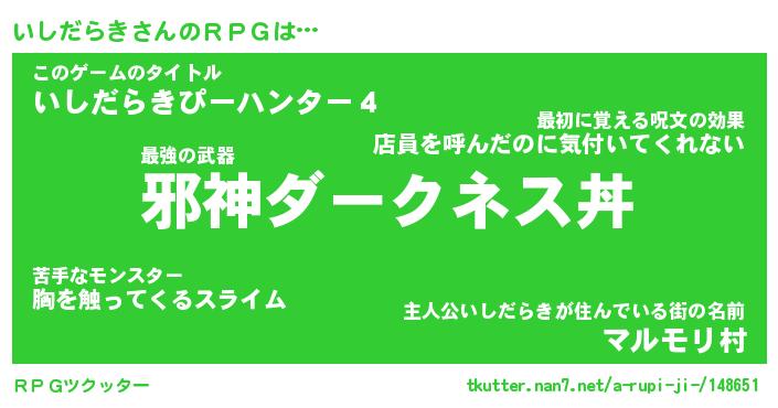 | 男性向けラノベタイトル風あだ名 | 『イシダラキアートオンライン』 |