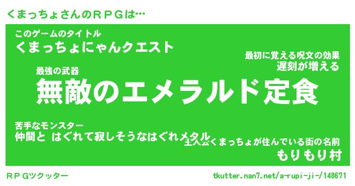 | ファンタジー風あだ名 | 『クマフェル』『エターナルクマッチョー』 |