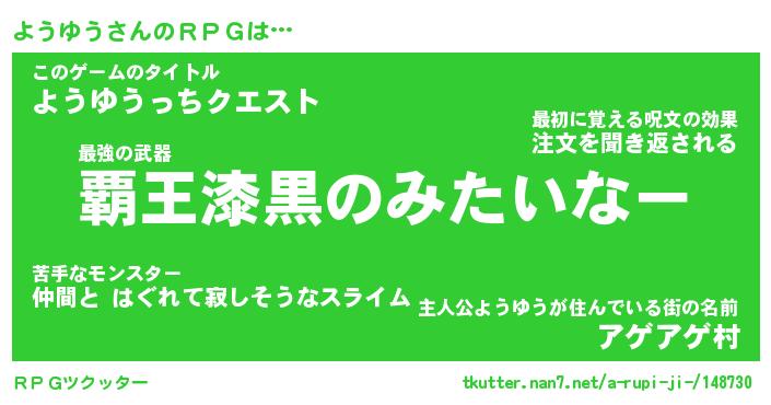 | ファンタジー風あだ名 | 『ヨウフェル』『エターナルヨウユウー』 |