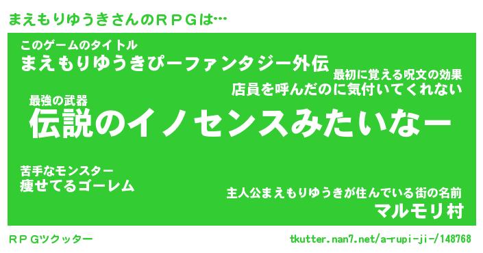 | 肩書あだ名 | 『まえもりゆうき御曹司』 |