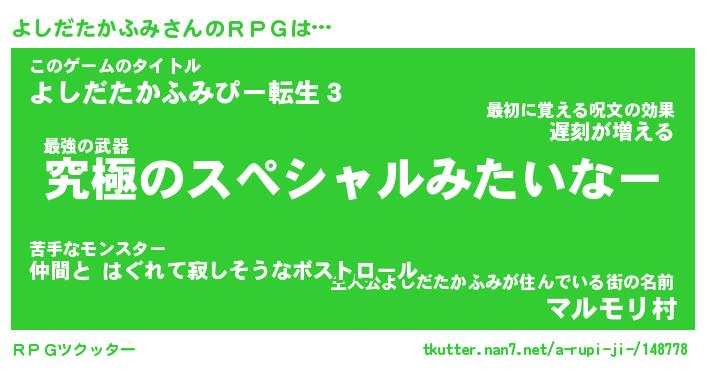 | 伝説のあだ名 | 『不死鳥の竜騎士よしだたかふみ』 |