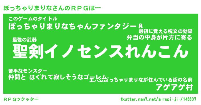 | 恥ずかしいあだ名 | 『プリティーぽっちゃりまりな』 |