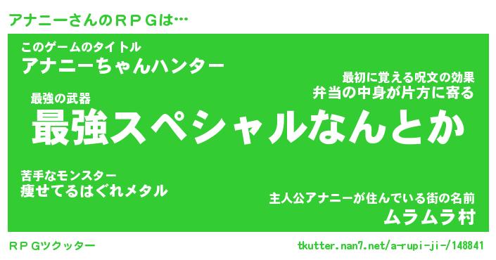 | ヒーロー風カッコイイあだ名 | 『スーパーアナニー』『暗黒騎士アナ』 |