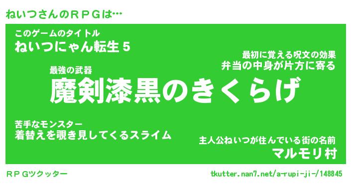 | 男性向けラノベタイトル風あだ名 | 『ねいつの憂鬱』 |