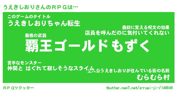 | 男性向けラノベタイトル風あだ名 | 『ウエキシオリアートオンライン』 |
