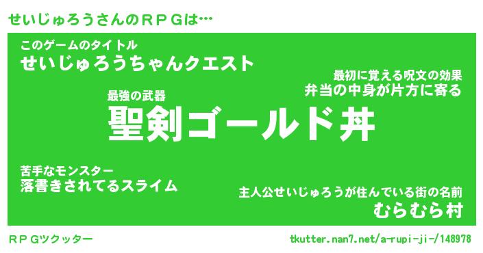 | 胡散臭い通販商品みたいなあだ名 | 『必ず成功する霊験あらたかなお札…その名も「せいじゅろう」』 |