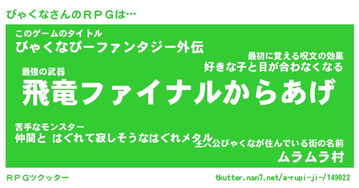 | ファンタジー風あだ名 | 『ビャフェル』『エターナルビャクナー』 |