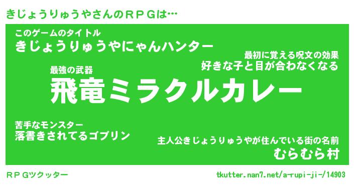 | 男性向けラノベタイトル風あだ名 | 『キジョウリュウヤアートオンライン』 |