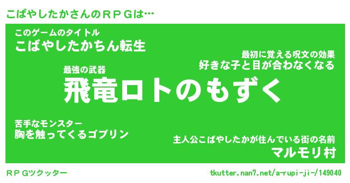| 伝説のあだ名 | 『封印されし竜騎士こばやしたか』 |