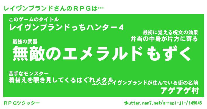 | 男性向けラノベタイトル風あだ名 | 『レイヴンブランドアートオンライン』 |