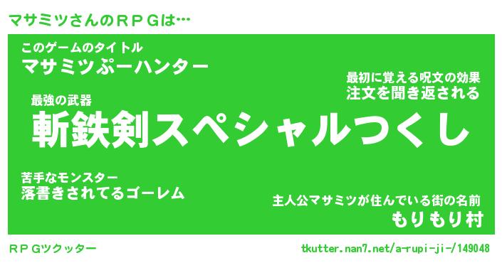 | 伝説のあだ名 | 『伝説の竜騎士マサミツ』 |
