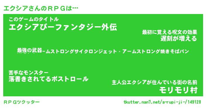 | ファンタジー風あだ名 | 『エクフェル』『エターナルエクシアー』 |