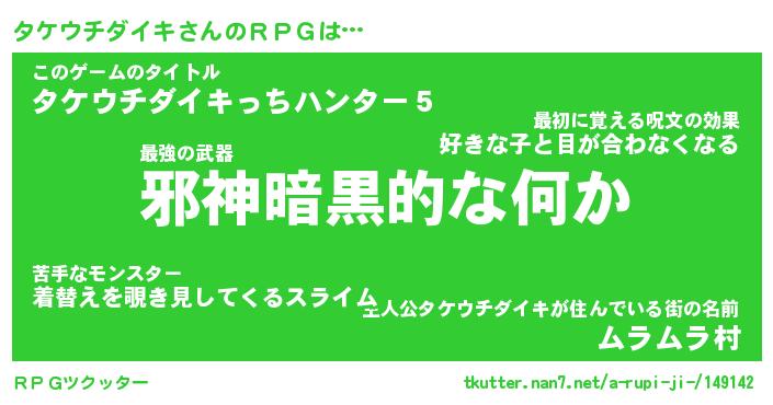 | 男性向けラノベタイトル風あだ名 | 『タケウチダイキアートオンライン』 |