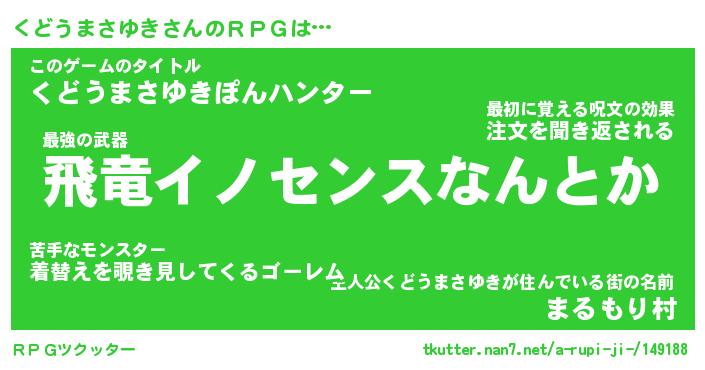 | 男性向けラノベタイトル風あだ名 | 『クドウマサユキアートオンライン』 |