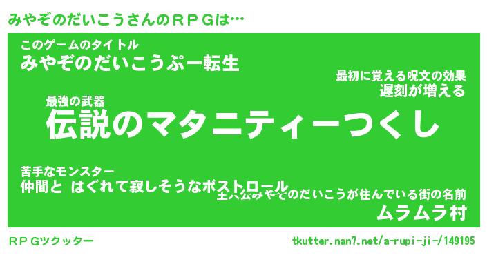 | 肩書あだ名 | 『みやぞのだいこう御曹司』 |