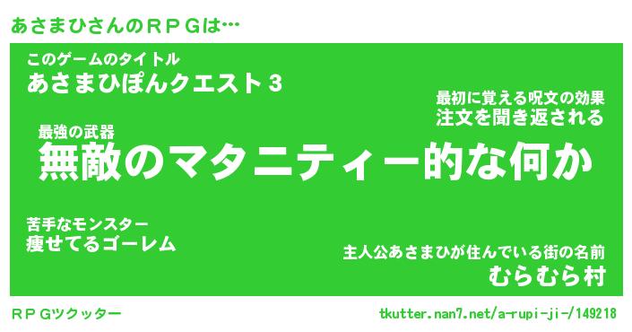 | 伝説のあだ名 | 『封印されしスナイパーあさまひ』 |