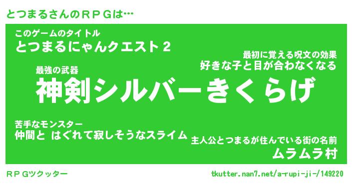 | 男性向けラノベタイトル風あだ名 | 『とつまるの憂鬱』 |