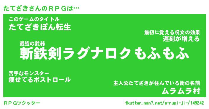 | ファンタジー風あだ名 | 『タテフェル』『エターナルタテザキー』 |
