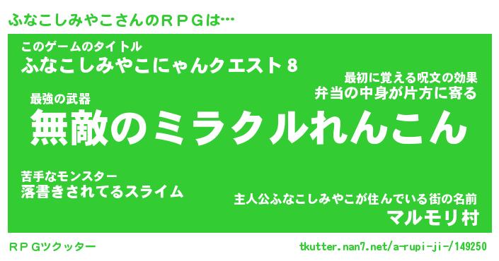 | 男性向けラノベタイトル風あだ名 | 『フナコシミヤコアートオンライン』 |