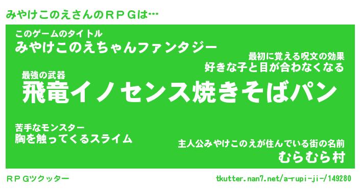 | ファンタジー風あだ名 | 『ミヤフェル』『ファントムミヤス』 |