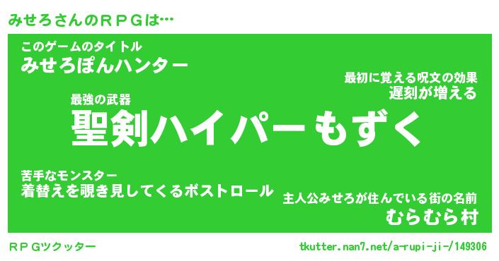| 男性向けラノベタイトル風あだ名 | 『みせろの憂鬱』 |