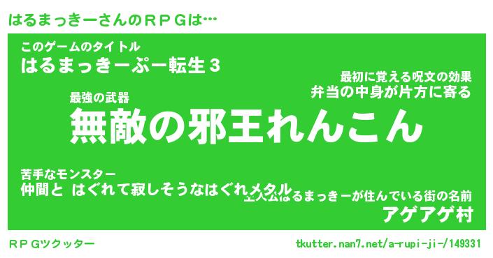 | 伝説のあだ名 | 『封印されし傭兵はるまっきー』 |