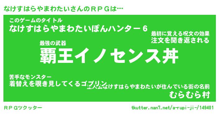 | 男性向けラノベタイトル風あだ名 | 『ナケスハラヤマワタイアートオンライン』 |