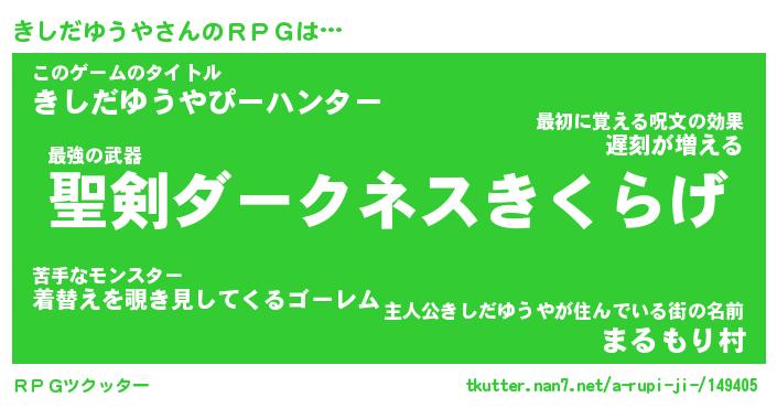 | 男性向けラノベタイトル風あだ名 | 『きしだゆうやの憂鬱』 |