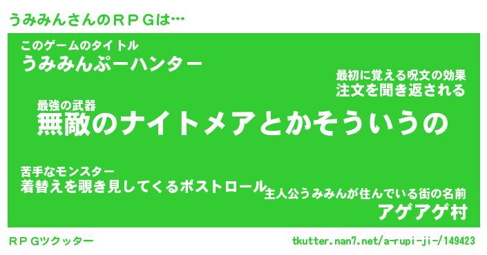 | 男性向けラノベタイトル風あだ名 | 『ウミミンアートオンライン』 |