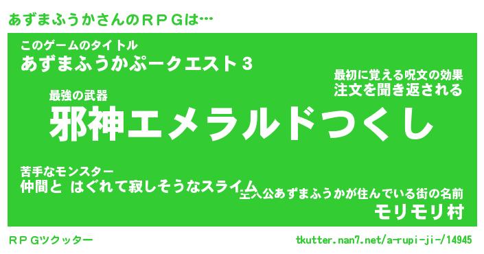 | 胡散臭い通販商品みたいなあだ名 | 『億万長者になれる霊験あらたかなお札…その名も「あずまふうか」』 |