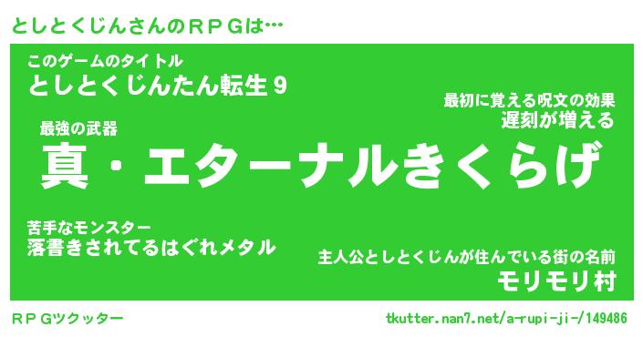 | 男性向けラノベタイトル風あだ名 | 『トシトクジンアートオンライン』 |
