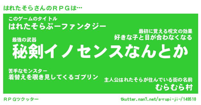 | 伝説のあだ名 | 『伝説のスナイパーはれたそら』 |