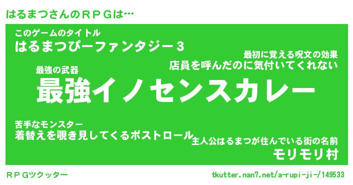 | 胡散臭い通販商品みたいなあだ名 | 『モテモテ間違いなし霊験あらたかなお札…その名も「はるまつ」』 |