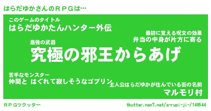 | 伝説のあだ名 | 『不死鳥の傭兵はらだゆか』 |