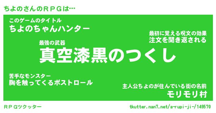 | ファンタジー風あだ名 | 『チヨフェル』『エターナルチヨノー』 |