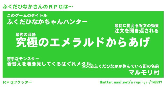 | 男性向けラノベタイトル風あだ名 | 『フクダヒナカアートオンライン』 |
