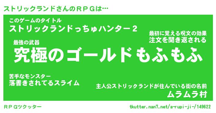 | 胡散臭い通販商品みたいなあだ名 | 『モテモテ間違いなし霊験あらたかなお札…その名も「ストリックランド」』 |