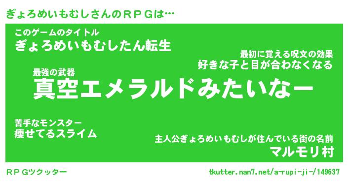 | 胡散臭い通販商品みたいなあだ名 | 『億万長者になれる霊験あらたかなお札…その名も「ぎょろめいもむし」』 |