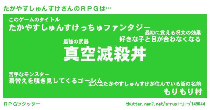 | 胡散臭い通販商品みたいなあだ名 | 『億万長者になれる霊験あらたかなお札…その名も「たかやすしゅんすけ」』 |