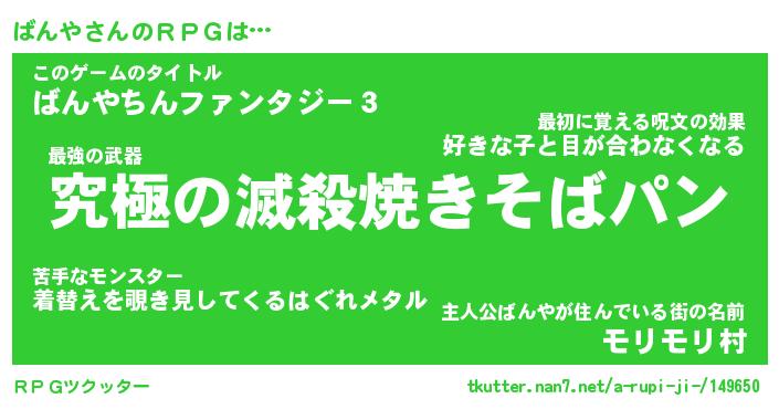 | ヒーロー風カッコイイあだ名 | 『スーパーバンヤ』『ウルトラばんやマン』 |