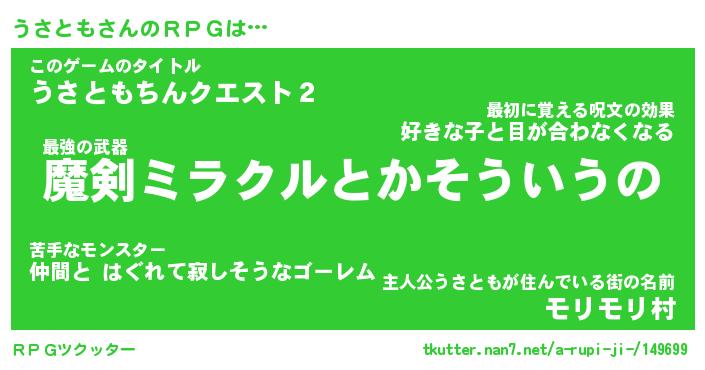 | ファンタジー風あだ名 | 『ウサフェル』『エターナルウサトモー』 |