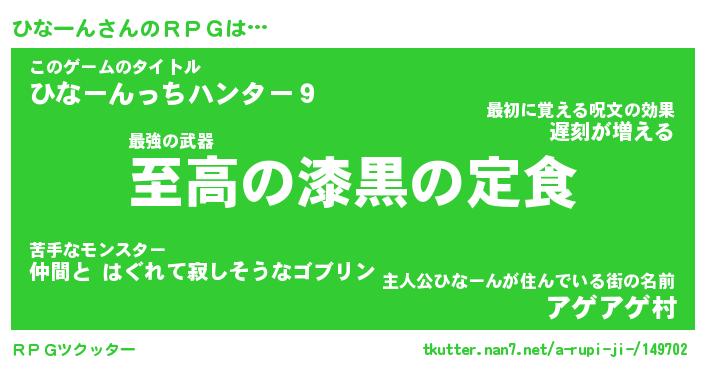 | ツイッター | ひなーんさんのツイッターID『dendenmushi_kun』 |
