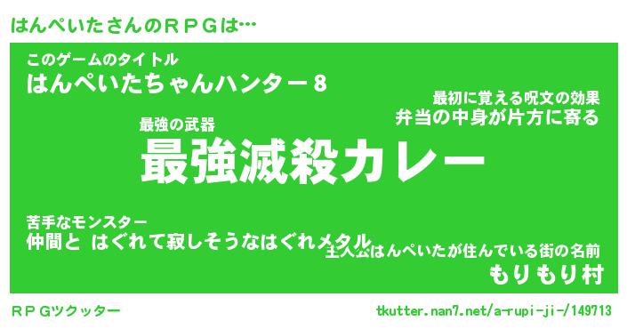 | 男性向けラノベタイトル風あだ名 | 『ハンペイタアートオンライン』 |