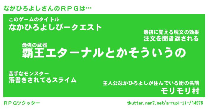 | 伝説のあだ名 | 『封印されし傭兵なかひろよし』 |