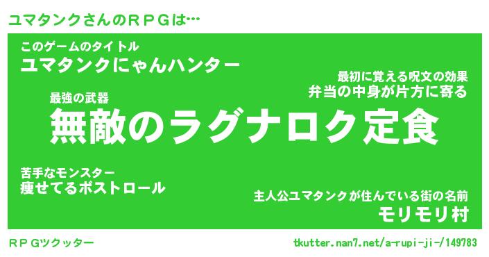 | 男性向けラノベタイトル風あだ名 | 『ユマタンクアートオンライン』 |
