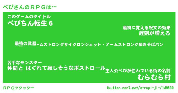 | ファンタジー風あだ名 | 『ペビフェル』『エターナルペビー』 |