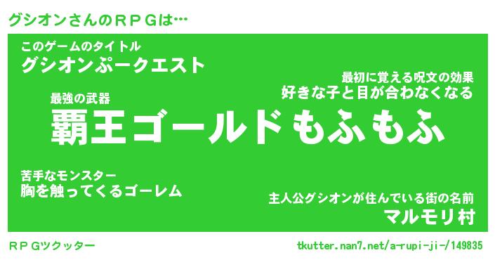 | ファンタジー風あだ名 | 『グシフェル』『エターナルグシオンー』 |